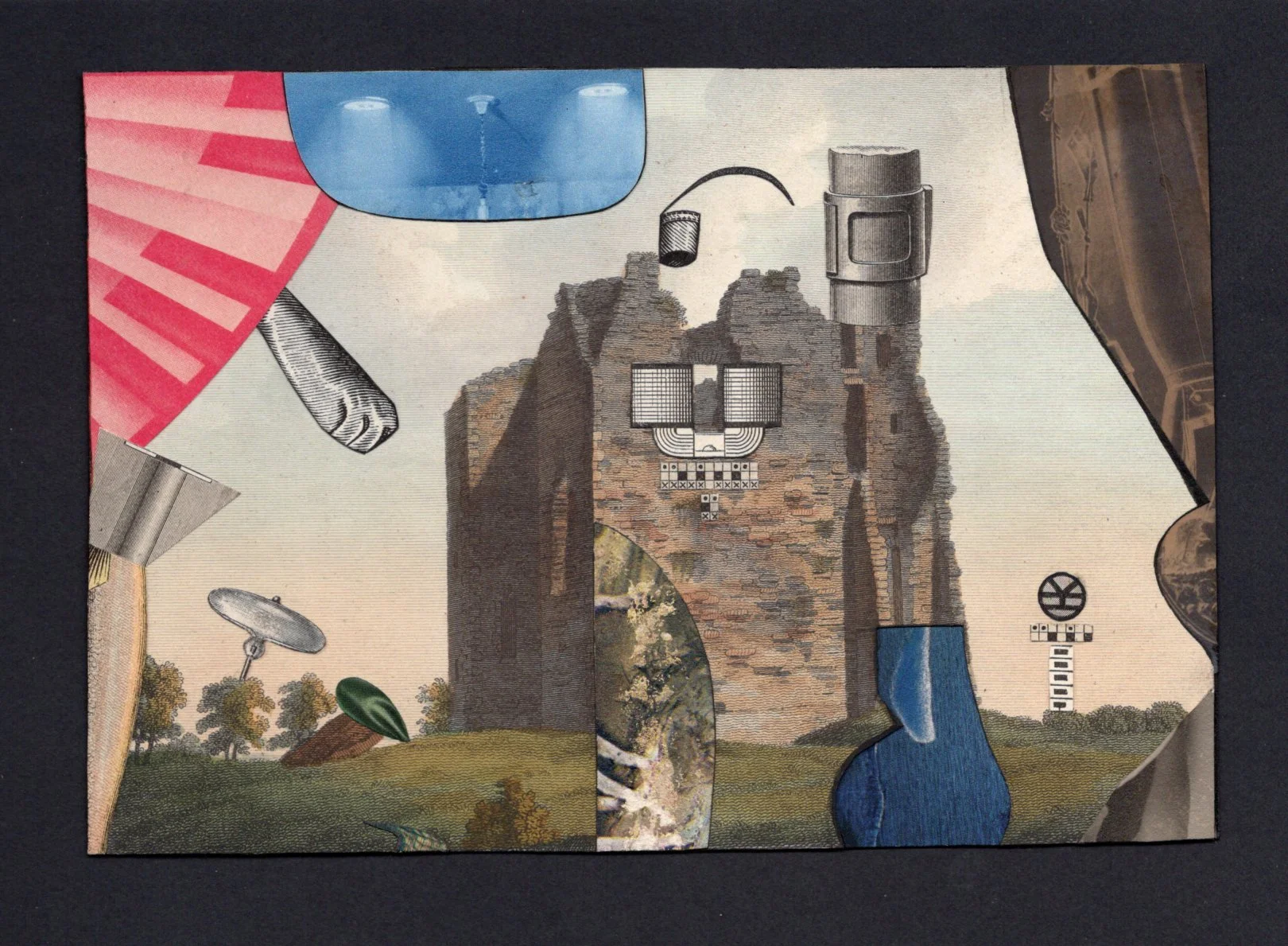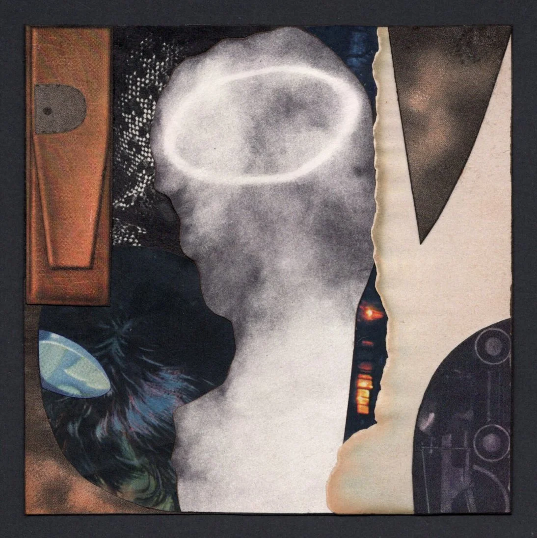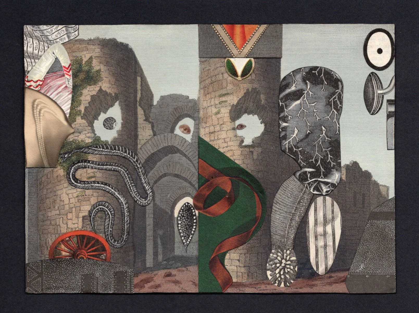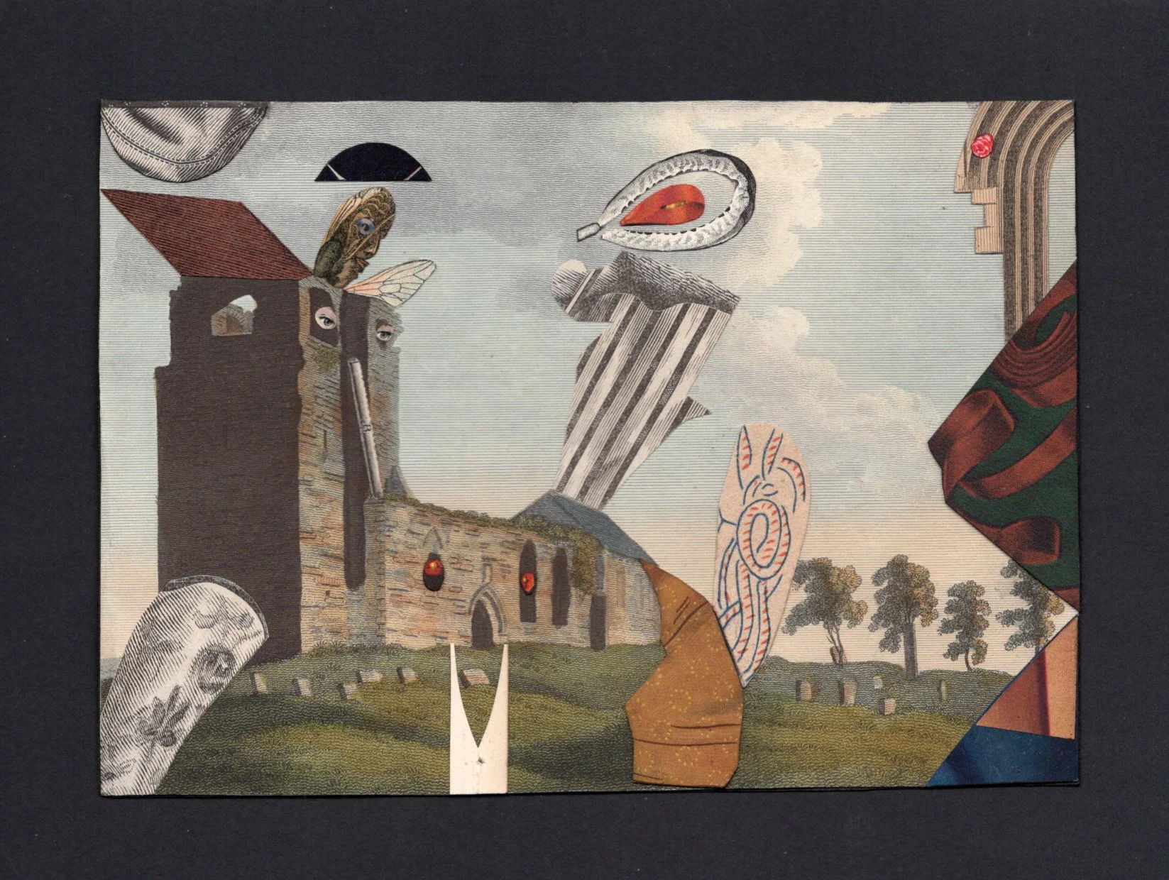 handcut vintage paper collage on 2 antique photo cabinet cards